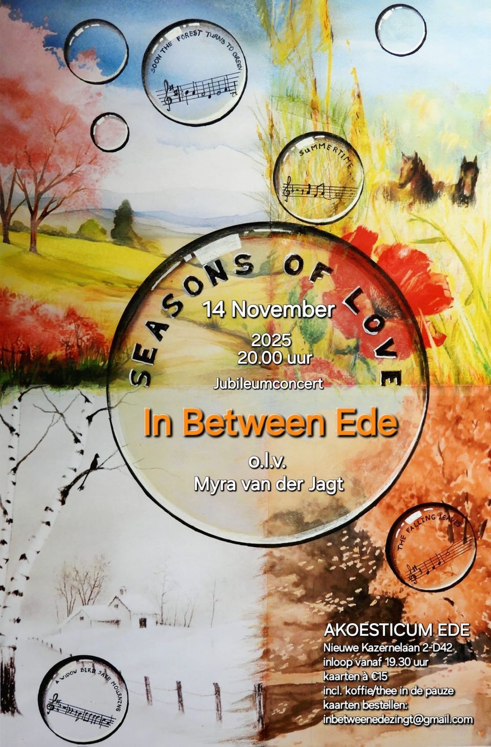 Eind 2025 bestaat In Between Ede 25 jaar en dat vieren we natuurlijk met een (jubileum)concert. 25 jaar koorgeschiedenis in 4 seizoenen, een kleurrijke muzikale reis door de tijd!